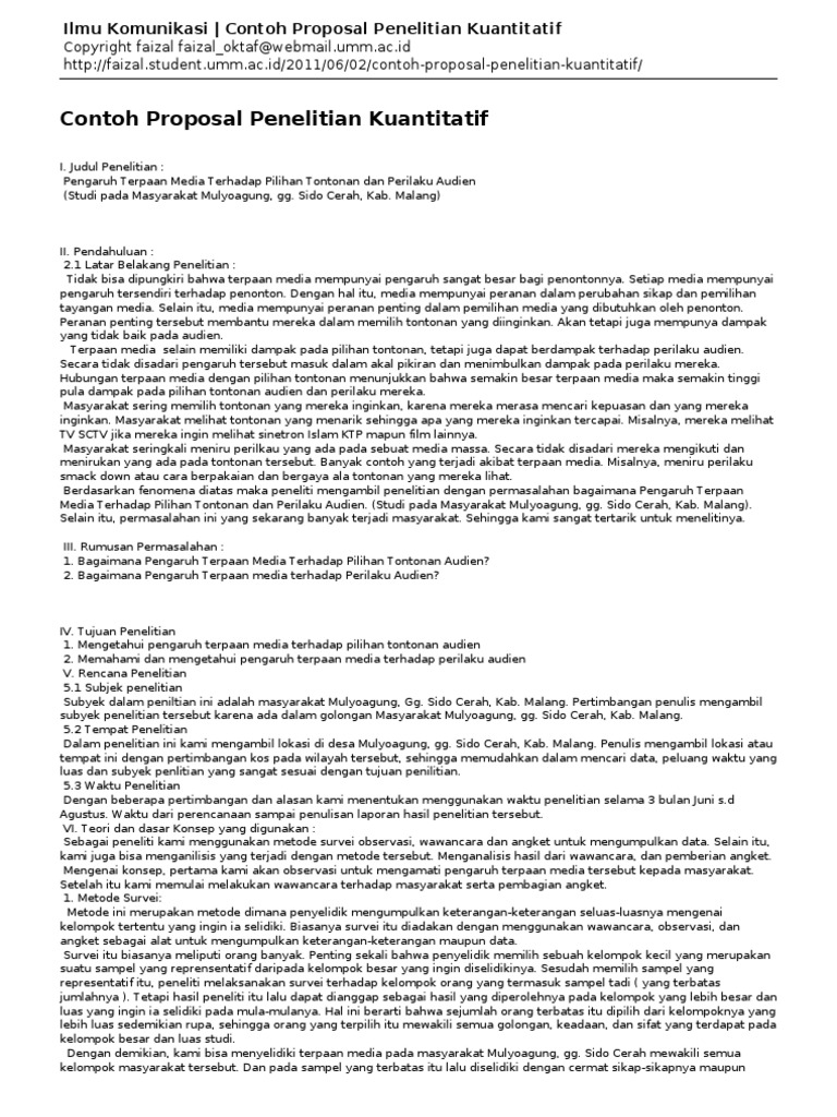 Ilmu Komunikasi Contoh Proposal Penelitian Kuantitatif