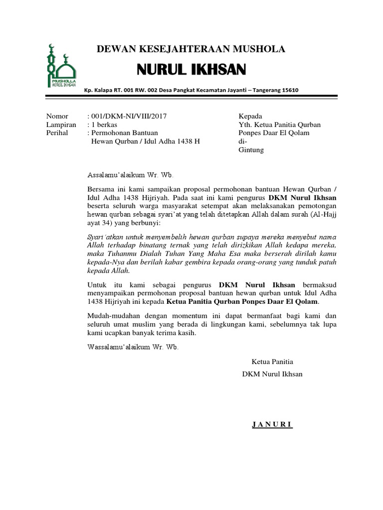 Contoh Surat Permohonan Hewan Qurban Doc Surat Ras