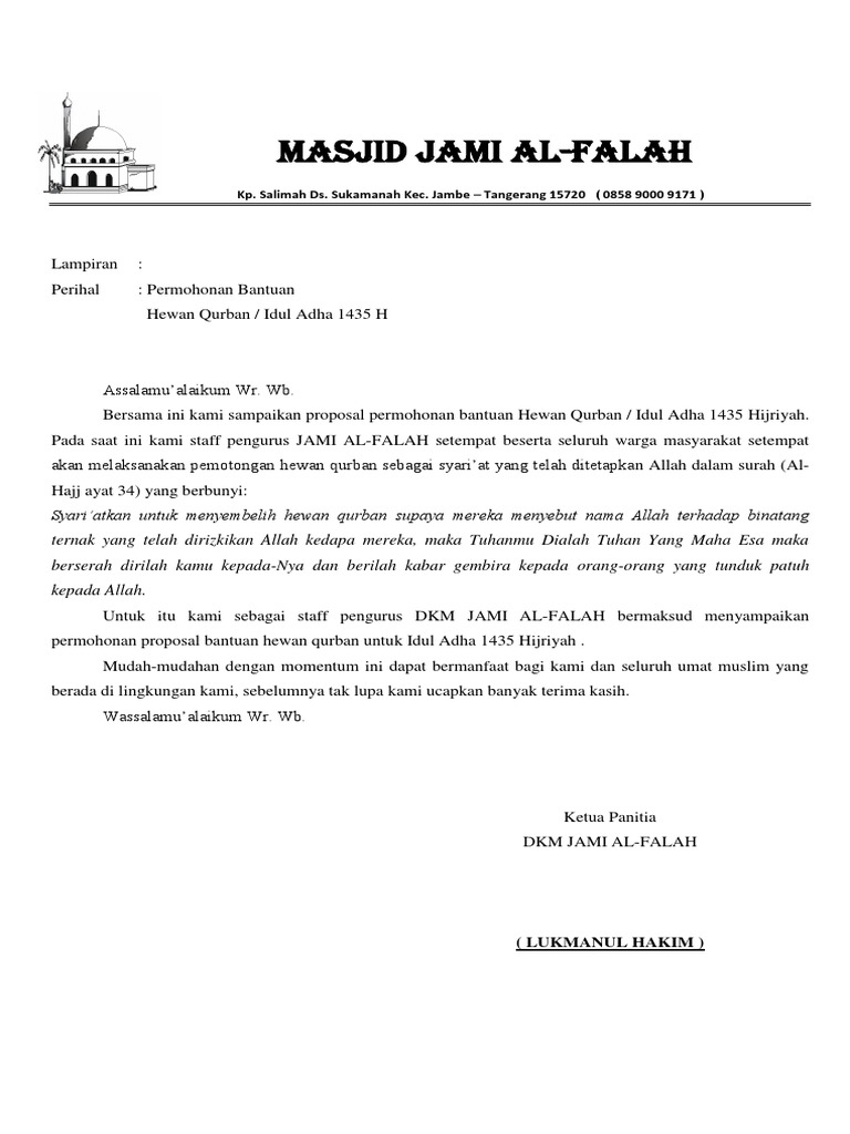 Surat permohonan hewan qurban. The collection that comprising chosen picture and the best amongst. PROPOSAL PERMOHONAN HEWAN QURBAN IDUL ADHA 1436 H MASJID AT TAAWUN A. Atas segala perhatian pertimbangan serta bantuan BapakIbu kami.