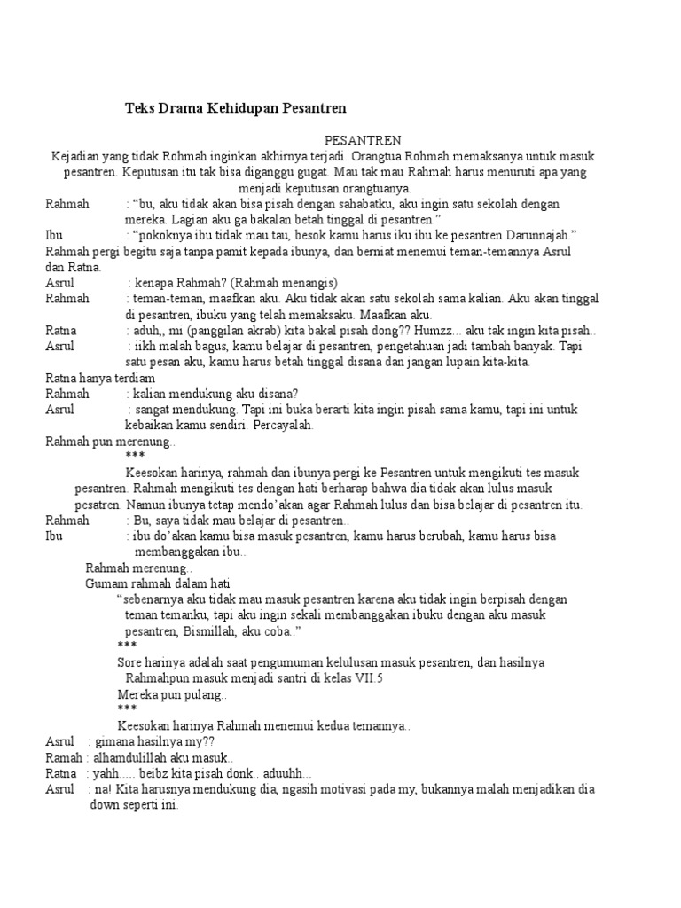 Naskah drama pesantren. Suasananya pun sangat tenang tentram dan damai. Kehidupan di Pesantren Naskah Drama Santri. Jika Anda paham dunia sastra pasti Anda sudah mengenal dengan.